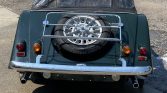 Originally finished in red, the car was repainted its current shade of British Racing Green during the refurbishment in 2005. Exterior features include a black soft top, Lucas driving lamps, a luggage rack, a rear-mounted spare, and dual chrome exhaust outlets. The passenger-side front fender was damaged under current ownership, and a black tonneau cover is included in the sale.
