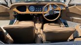 A wood-rimmed three-spoke steering wheel sits ahead of Smiths instrumentation, which consists of a 6k-rpm tachometer, a 140-mph speedometer, and a combination gauge displaying amperage, oil pressure, fuel level, and water temperature. The five-digit odometer shows 67k miles.