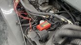 The replacement 3.5-liter Rover V8 was reportedly rebuilt in 2005 and is fitted with an Offenhauser intake manifold, an Edelbrock carburetor, and an aluminum radiator. The water pump is said to have been replaced in 2019. The seller states that the battery requires replacement and recommends performing a tune-up and rebuilding the starter.