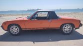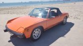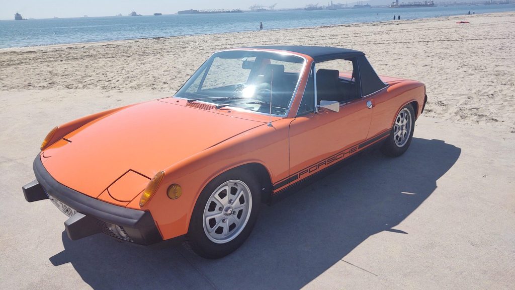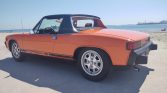 This 1974 Porsche 914 is finished in Tangerine over black vinyl and is powered by a 2.0-liter flat-four paired with a five-speed manual transaxle. Equipment includes a removable targa roof panel, 15″ Fuchs wheels, pop-up headlights, fog lights, and a Blaupunkt AM/FM stereo.