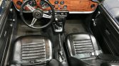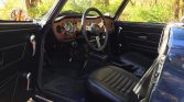 Originally delivered with blue upholstery, the high-back seats were reupholstered in black with matching carpets and door panels in 2012. Features include a refinished woodgrain dashboard, a lockable glove box, a wooden shift knob, Triumph-branded rubber floor mats, a heater, and an AM/FM radio. The shift knob and radio were replaced in 2006.