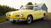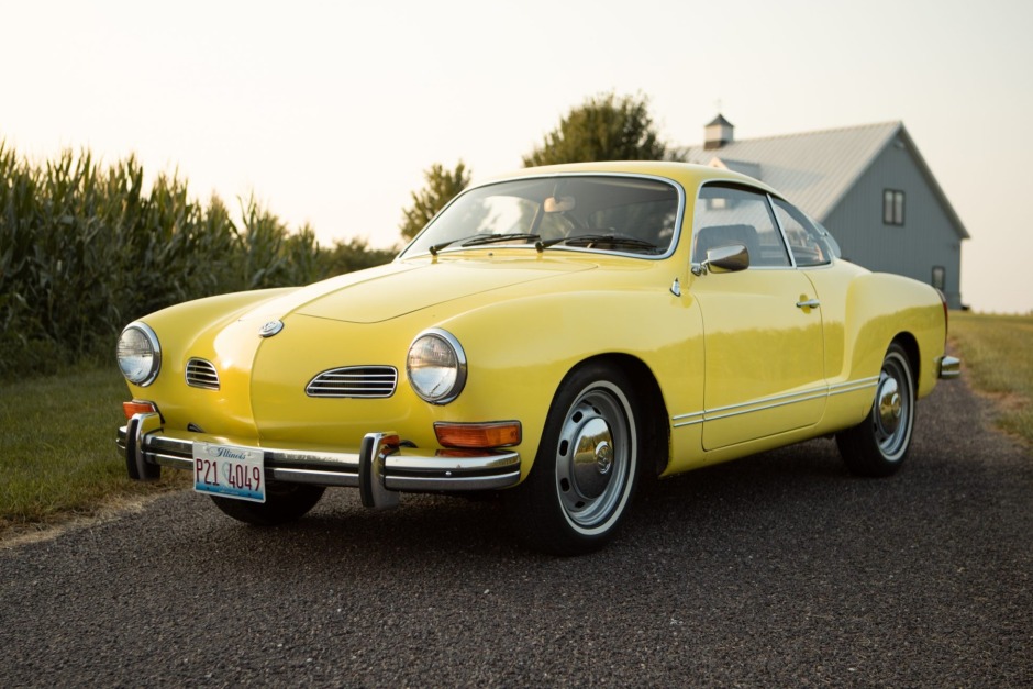 This 1974 Volkswagen Karmann Ghia was reportedly sold new from Luft Volkswagen of Pekin, Illinois, in May 1975. It is said to have been driven approximately 41k miles through 1988, followed by a period of inactivity ending in 2011 when it was acquired by Autohaus of Peoria, Illinois, from whom the seller purchased the car in June 2011. Finished in yellow over brown vinyl, the car is equipped with bucket seats, chrome bumpers, an AM/FM radio, and a Weber two-barrel carburetor. Power is supplied by a 1.6-liter flat-four paired with a three-speed “Automatic Stickshift” transmission, and service under current ownership included the installation of an electronic distributor conversion and replacement of the starter, the ignition switch, the shocks, the tires, the exhaust system, and the engine pushrod tubes and seals.
