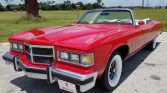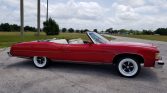 This 1975 Pontiac Grand Ville Brougham convertible was delivered new to Hutchinson Pontiac Sales of Rouses Point, New York finished in Roman Red over white vinyl with a 455ci V8 and a three-speed automatic transmission. Other features include a limited-slip differential, a power-operated white soft top, 15″ Rally II wheels, front disc brakes, power-assisted brakes and steering, power windows, cruise control, a tilting steering column, and an AM/FM radio. The seller acquired the car in February 2021 and has since replaced the tires.