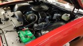 The 455ci V8 is finished in blue and is topped with a four-barrel carburetor and a black air-cleaner assembly.