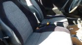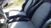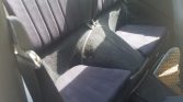 The interior features front seats that are trimmed in blue cloth with patterned inserts. Amenities include a Technics cassette radio, a heater, air conditioning, crank windows, and tan and blue Coco floor mats.