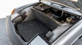 The body is finished in metallic silver and features US-specification impact bumpers, retractable headlights, a removable roof panel, and a deck lid spoiler. The seller notes rust at the rear jack points, inside the rear trunk lid, and on the floors as well as bubbling under the paint in spots. The front trunk springs are weak, the auxiliary lights and horn do not work, and the windshield has scratches. Rust was reportedly repaired with replacement metal in the battery tray, the right-side inner engine compartment panels, and spare wheel bay under previous ownership.