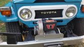 The body is said to have undergone rust repairs using replacement sheet metal before being repainted in blue with a white roof. Additional work reportedly included cadmium-plating existing hardware as well as installation of stainless steel exterior nuts and bolts. The Warn M8274 winch was dealer-installed in period and comes with a remote controller, and the truck also features a receiver hitch bolted to the rear bumper.