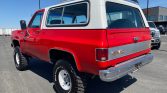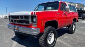 This 1978 GMC Jimmy 4×4 was refurbished and modified during prior ownership, which included refinishing the exterior in two-tone red and white, retrimming the interior with matching two-tone upholstery, and installation of a 4″ suspension lift and 35″ tires. Power is provided by a replacement 350ci V8 paired with a TH350 three-speed automatic transmission and a dual-range transfer case, and additional equipment includes locking front hubs, power steering, and a removable hard top.