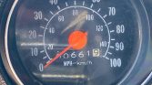 The two-spoke steering wheel sits ahead of a 100-mph speedometer along with gauges for fuel level, battery voltage, oil pressure, and coolant temperature.