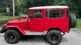 This 1978 Toyota Land Cruiser FJ40 was refurbished under previous ownership and was acquired by the seller in 2020. It is finished in red with a white roof over black vinyl and is powered by a 4.2-liter inline-six paired with a four-speed manual transmission and a dual-range transfer case. Equipment includes an ARB front bumper with an integrated winch, LED headlamps, Old Man Emu shocks, and 32″ tires. Work performed under current ownership included rebuilding the Birfield joints, cleaning the carburetor, repairing the accelerator pump, and replacing the crankshaft seal, leaf springs, and front wheel bearings.