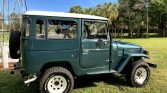 This 1980 Toyota Land Cruiser FJ40 is a left-hand-drive example that was refurbished in Venezuela, reportedly in the 2010s, before being imported to the US in 2019 and acquired by the seller in 2020. The truck wears metallic green paint and is powered by a 4.2-liter 2F inline-six mated to a four-speed manual transmission and a two-speed transfer case. Features include an aftermarket air conditioning system, auxiliary lights, white steel wheels with newer BFGoodrich tires, and late-model bucket seats. A replacement starter, clutch hydraulic cylinders, and distributor have been fitted aLording to the seller.