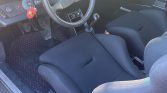 The cabin features Recaro SR3 seats upholstered in black cloth up front along with black trim on the dashboard, door panels, and rear seats. Features include a Pioneer CD stereo, Coco floor mats, and power windows.