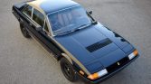 This 1982 Ferrari 400i is a European-market example that was imported into the US in January 1982 and is finished in black over tan leather. Power is provided by a fuel-injected 4.8-liter V12 paired with a three-speed automatic transmission, and equipment includes flip-up headlights, TRX wheels with Michelin tires, power-assisted steering, four-wheel disc brakes, front and rear air conditioning, wood trim, and a Kenwood cassette stereo.