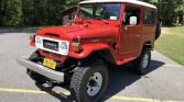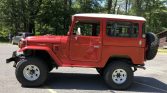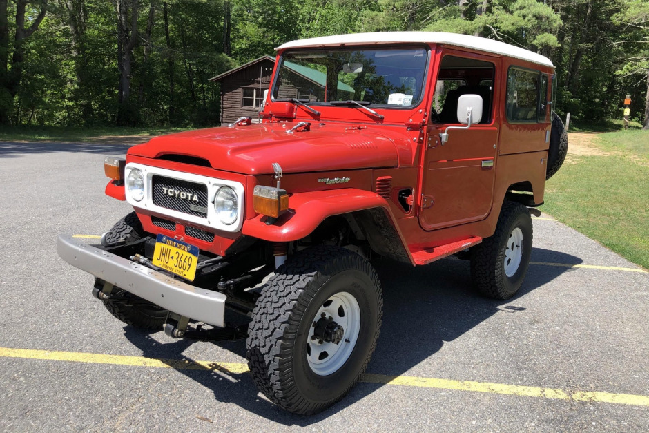 This 1982 Toyota Land Cruiser BJ42 is a left-hand-drive example that was imported into the US in the early 1990s from British Columbia, Canada, and has since spent time in Connecticut and New York. The truck is finished in red over gray and is powered by a 3.4-liter diesel inline-four paired with a four-speed manual transmission and a dual-range transfer case. Equipment includes an Aqualu aluminum tub, rear jump seats, locking front hubs, a cabin heater, a…