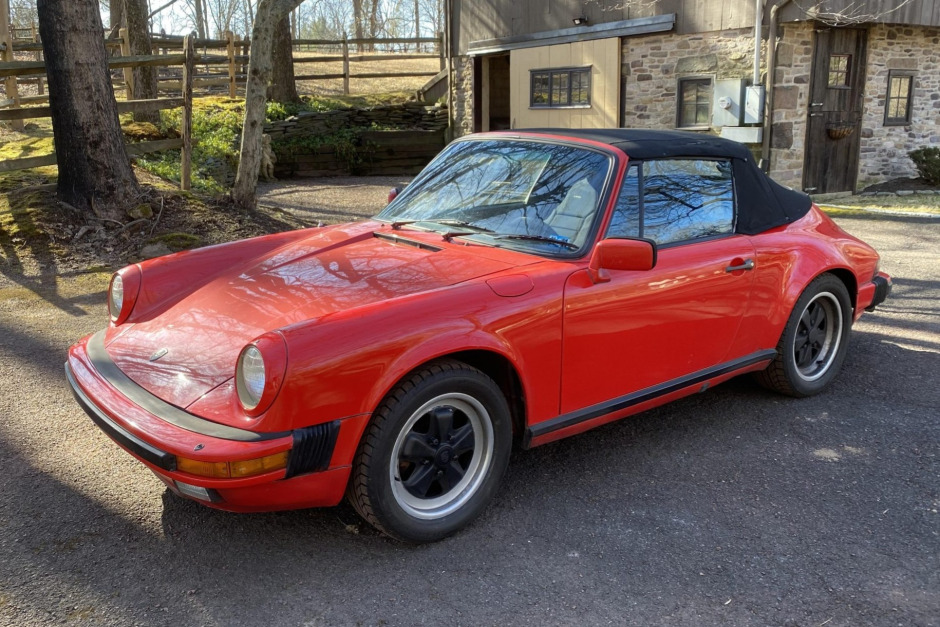 This 1984 Porsche 911 Carrera cabriolet is finished in red over black leather and is powered by a 3.2-liter flat-six mated to a five-speed manual transaxle. Features include a black convertible top, fog lights, 15″ Fuchs wheels, high-back bucket seats, air conditioning, and a Pioneer stereo. The seller acquired the car in May 2002, and recent service consisted of an oil change and a state inspection in November 2020. This 911 Carrera is offered with Wet Okole front seat covers, a boot cover, a clean Carfax report, and a clean Pennsylvania title in the seller’s name.