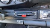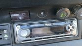 The cabin features high-back bucket seats upholstered in black leather along with a matching dashboard, door panels, carpets, and floor mats. Amenities include air conditioning, power windows, and an aftermarket Pioneer stereo. The front seats are fitted with Wet Okole covers, and the heater does not work.