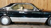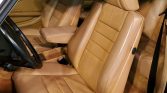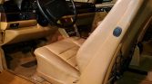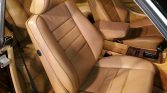 The cabin features Palomino leather upholstery on the seats along with matching door panels, carpets, and floor mats, a black upper dashboard, and burled wood trim. Equipment includes heated and power-adjustable front seats, automatic climate control, cruise control, power aLessories, and a Becker Grand Prix AM/FM cassette stereo.