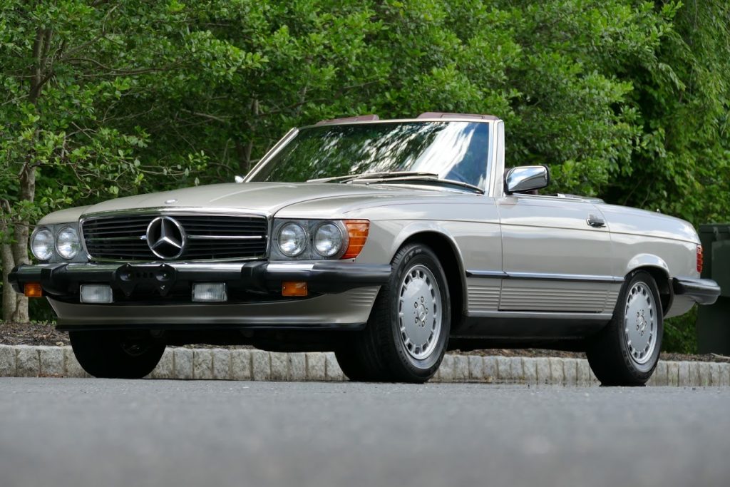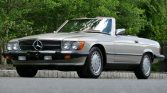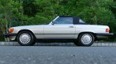 This 1986 Mercedes-Benz 560SL is finished in Smoke Silver Metallic over Medium Red leather and is powered by a 5.5-liter V8 paired with a four-speed automatic transmission. Additional equipment includes a black convertible top, a body-color removable hardtop, air conditioning, cruise control, a Becker Grand Prix stereo, a BEL radar detector, fog lights, and 15″ Gullideckel wheels. The car was first sold in New York and spent time in Connecticut before its acquisition by the seller in March 2021. Recent maintenance is said to have included refinishing the wheels, servicing the air-conditioning system, and replacing the brake pads, fuel pumps, and filters.