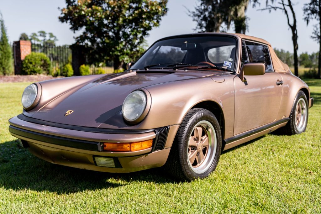 This 1987 Porsche 911 Carrera cabriolet was purchased by the seller’s father-in-law in 1989 from its first owner in California, and it was acquired by the seller and relocated to North Carolina in 1999. The car is finished in Nougat Brown Metallic over brown upholstery and is powered by a 3.2-liter flat-six mated to a G50 five-speed manual transaxle. Equipment includes a Mahogany soft top with matching top boot, 15″ Fuchs wheels, fog lights, air conditioning, power-adjustable…