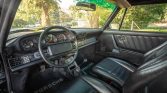 The cabin features black upholstery on the seats as well as matching door panels and carpeting. Amenities include a power-adjustable driver’s seat, a Blaupunkt Charleston cassette stereo, an Escort radar detector and alarm system, Porsche-script floor mats, power windows, and air conditioning.