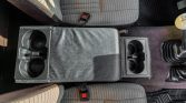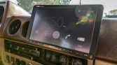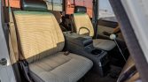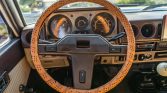 The cabin houses front bucket seats with replacement foam inserts and striped brown cloth upholstery, which matches that used on the door panel inserts. All four inner doors, the cargo area, the ceiling, and the floors are said to have been treated with butyl sound deadening material. Additional work under current ownership included replacement of two window regulators, the ashtray, and the fusebox panel as well as installation of a lockable storage console with cupholders, an FJ80 rearview mirror, a color-matched dash cap, and an inclinometer. A Sony touchscreen stereo with a backup camera is linked to a five-channel amplifier and replacement speakers.