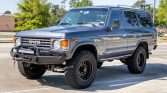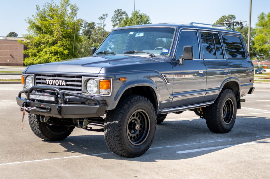 This 1987 Toyota Land Cruiser FJ60 is powered by a 350ci V8 mated to an H55 five-speed manual transmission and a two-speed transfer case. The truck was acquired by the seller in January 2020 after spending time in Washington and Oregon. Modifications installed under previous ownership include American Eagle wheels, aftermarket front and rear bumpers, power-operated BMW seats, and a Warn winch. Maintenance performed in March 2021 consisted of replacing the alternator, serpentine belt, and tensioner.