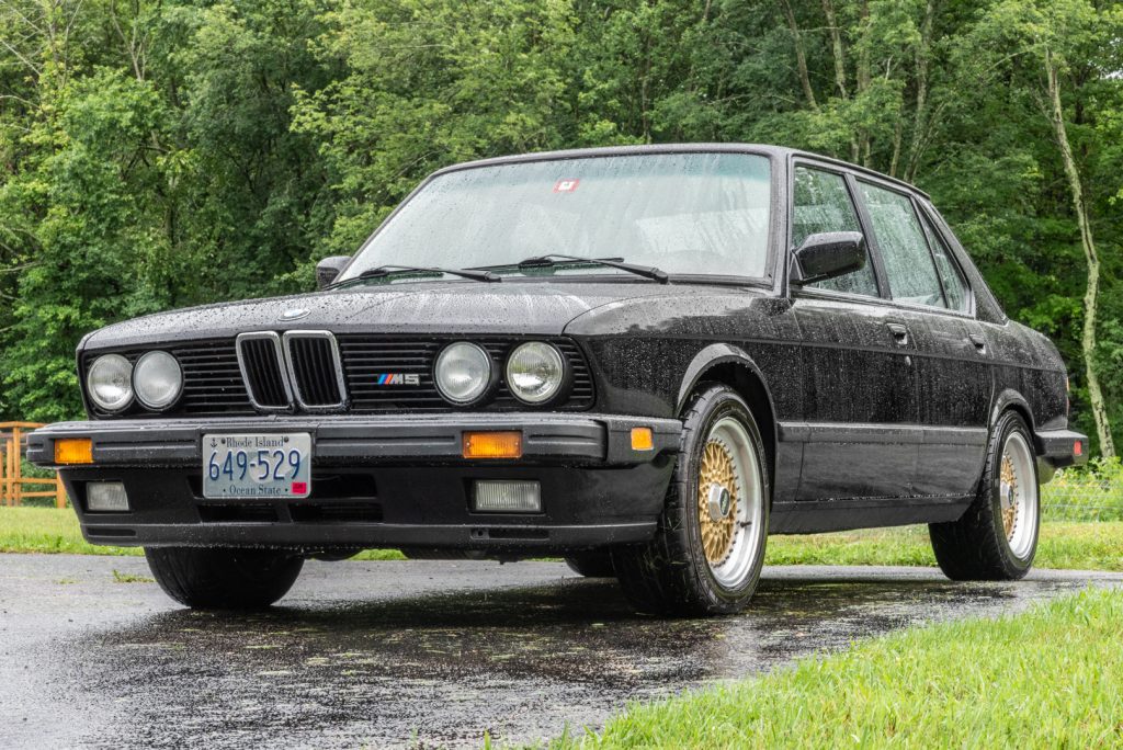 This 1988 BMW M5 is one of 1,340 examples produced for the North American market and was acquired nine years ago by the seller out of Vermont. The car is finished in Black over Natur leather, and power is provided by a 3.5-liter inline-six paired with a five-speed manual transmission. Factory equipment includes a limited-slip differential, power-adjustable and heated sport seats, and a retractable sunroof, while modifications consist of a Dinan ECU chip and exhaust camshaft gear, a Billy Boat exhaust system, 16″ BBS multi-piece wheels, a UUC short-throw shifter, and Bilstein HD shocks.