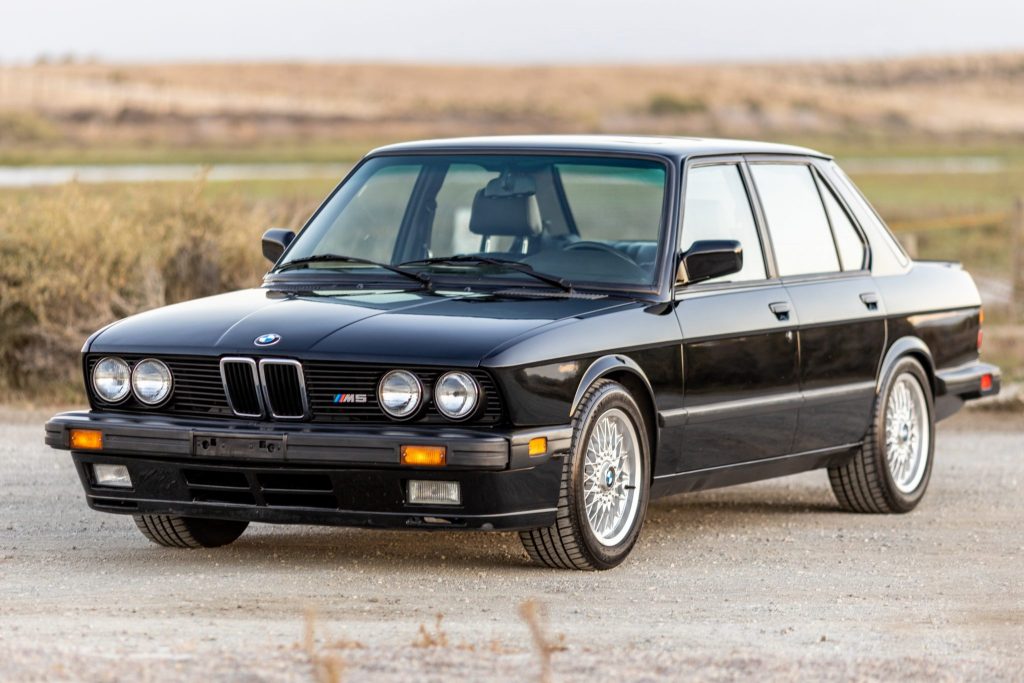 This 1988 BMW M5 is one of 1,340 examples produced for the North American market and was purchased by the seller in September of 2017. The car is finished in black over black leather upholstery and is powered by a 3.5-liter inline-six paired with a five-speed manual transmission. Features include 16″ basketweave wheels, an electric sunroof, heated and power-adjustable front seats, air conditioning, and a factory stereo. Work performed under current ownership has consisted of adding an aluminum radiator with replacement coolant hoses, powder coating the intake plenum, and replacing the rear sway bar mounts, front strut mounts, and front thrust arms.