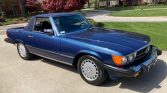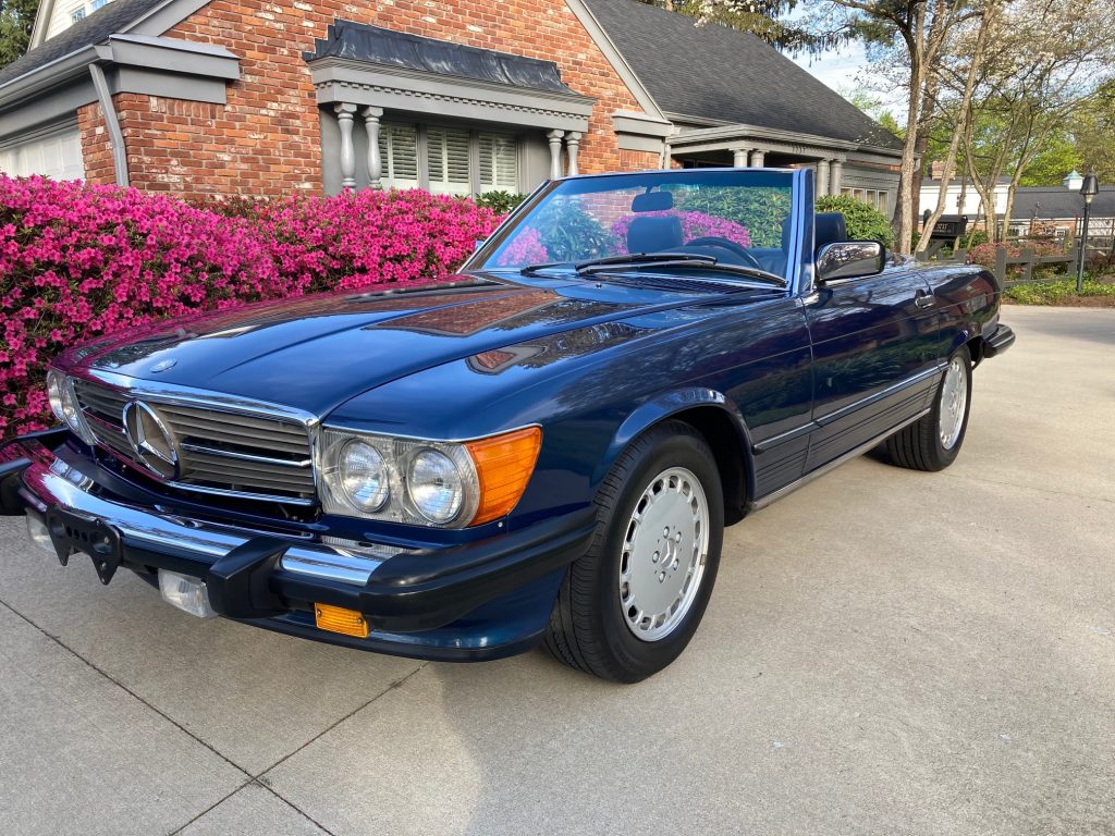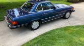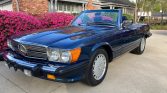 This 1988 Mercedes-Benz 560SL is finished in Nautical Blue Metallic over Royal Blue leather and powered by a 5.5 liter V8 paired with a four-speed automatic transmission. The car was first delivered to Bill Ahl Buick of Lima, Ohio and is said to have remained with the original owners until March 2021 when it was acquired by the seller. Equipment includes a dark blue convertible top, 15″ Gullideckel wheels, cruise control, automatic climate control, and a factory cassette stereo.