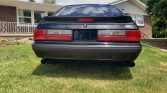 Replacement 17″ Cobra R wheels are mounted with Nitto Extreme ZR tires. Braking is handled by SVO-spec front and rear disc brakes with a Cobra-spec brake booster. Modifications to the suspension include Tokico shocks and struts, Eibach progressive springs, Eibach front and rear sway bars, Saleen subframe connectors, and Saleen rear lower control arms.