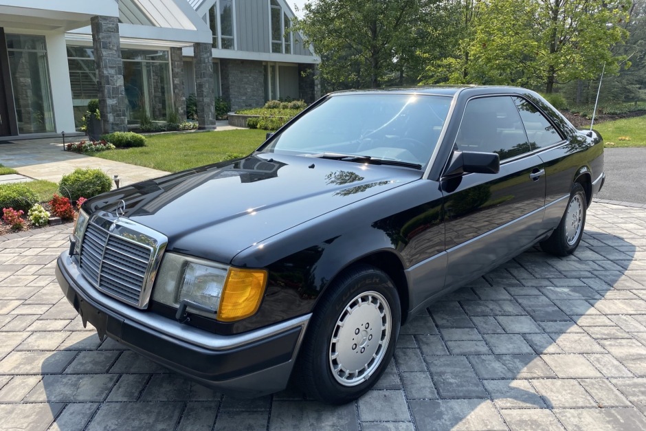 This Mercedes-Benz 300CE is finished in black and gray over tan leather and is powered by a 3.0-liter inline-six paired with a four-speed automatic transmission. Features include a power-operated sunroof, headlight wipers and washers, automatic climate control, and an aftermarket Alpine stereo. The car is said to have remained with one family until it was acquired by the seller in June 2021. An oil change was performed in preparation for the sale.