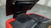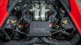 The Pininfarina-designed bodywork is finished in Rosso Corsa (300/9) with black lower aLents, and the car features pop-up headlights, straked side air intakes, quadruple exhaust outlets, louvered tail light covers, and Scuderia Ferrari fender shields.