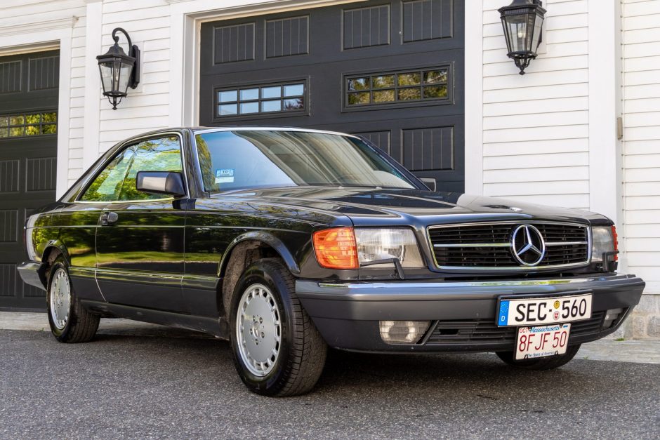 This 1990 Mercedes-Benz 560SEC was first registered in Florida and spent time and was acquired by the seller in Massachusetts in July 2020. The car is finished in Black Pearl Metallic over gray leather and powered by a 5.5-liter V8 paired with a four-speed automatic transmission. Additional equipment includes headlight wipers, fog lights, a powered sunroof, heated power-adjustable front seats, automatic climate control, and a Becker Grand Prix cassette stereo. Recent service reportedly includes an alignment and…