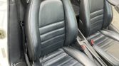 The car is finished in Grand Prix White and features a black soft top, a speed-activated rear spoiler, power-adjustable side mirrors, and integrated fog lights. The front hood both bumpers are said to have been refinished, and an area of touch-up paint on the passenger mirror is noted.