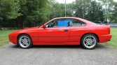 This 1991 BMW 850i is finished in Brilliant Red over Silver Gray leather and powered by a 5.0-liter V12 paired with a four-speed automatic transmission. Equipment includes 18″ M-Parallel wheels, a sunroof, dual-zone automatic climate control, power-adjustable front seats, a CD stereo, and a Wokke Performance ECU chip. The car was first registered in Florida and was acquired by the seller in 2020. Subsequent service consisted of replacing the front control arms, rear ball joints, tie rod ends, brake pads and rotors, ignition cap and rotor, fan clutch, power steering lines, fuel filters, and performing an oil change.