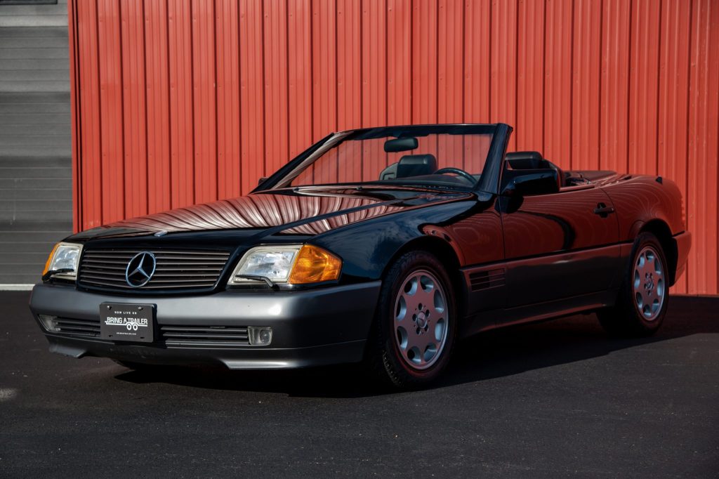 This 1991 Mercedes-Benz 500SL is a black-over-black convertible that is powered by a 5.0-liter M119 V8 paired with a four-speed automatic transmission. Equipment includes a power-operated soft top, headlight wipers, 16″ alloy wheels, automatic climate control, seat position memory, and a Becker Grand Prix stereo. First sold by Mercedes-Benz of Hollywood, California, the car spent time in North Carolina and Florida before its recent acquisition by the seller. Maintenance completed in 2021 included the replacement of several cooling system components and a rebuild of convertible top hydraulics.