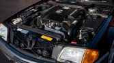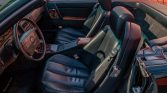 Black leather upholstery covers the power-adjustable seats, while wood trim accents the center console and doors. Amenities include memory settings, automatic climate control, and central locking. The car retains a factory Becker AM/FM cassette stereo.