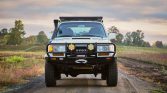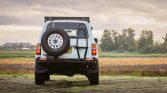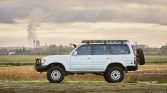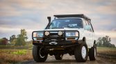 16″ BRAID Fullrace T Dakar wheels wear 285/75 BFGoodrich All-Terrain A/T K02 tires, and a matching spare is mounted on the rear swing-out carrier. The suspension has been modified with Icon Vehicle Dynamics Stage 3 remote-reservoir shocks, Ironman Performance coil springs with a 2.5″ lift, a Delta Panhard relocation kit, and later-model FJ80 front and rear sway bars. The truck is also equipped with T100 front brake calipers and rotors as well as EBS pads. Recent service included flushing the fluid and rebuilding the brake booster and rear drums.