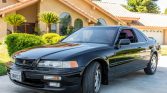 This 1992 Acura Legend LS coupe is finished in black over matching leather and is powered by a 3.2-liter V6 paired with a five-speed manual transaxle. Equipment includes a power sunroof, a rear spoiler, automatic climate control, cruise control, power aLessories, power-adjustable and heated front seats, a Bose cassette stereo with a trunk-mounted CD changer, and dealer-installed splash guards and fog lights. The car was registered as Planned Non-Operational between 2013 and 2021, and the oil was changed…