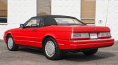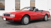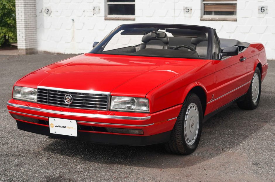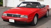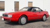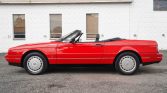 This 1992 Cadillac Allanté is a red-over-black convertible powered by a 4.5-liter V8 mated to a four-speed automatic transaxle. Features include a black soft top, forged 16″ alloy wheels, automatic climate control, a digital instrument display, cruise control, and a factory stereo with CD and cassette players.