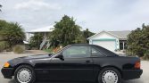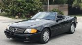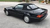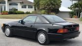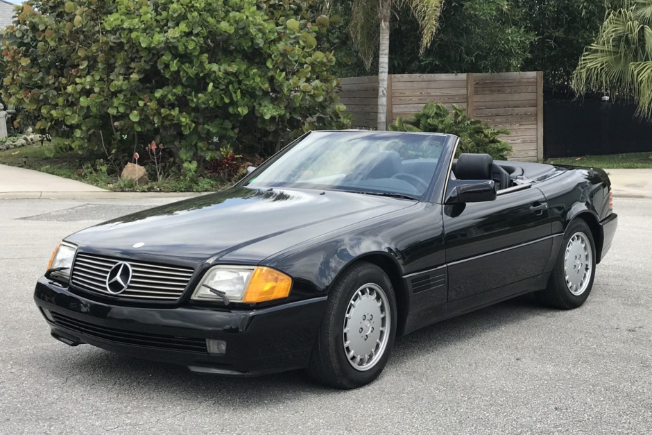 This 1992 Mercedes-Benz 500SL is powered by a 5.0-liter V8 paired with a four-speed automatic transmission, and is finished in black over a black leather interior. Equipment includes a black convertible soft top, a removable body-color hardtop, a wind deflector, power-adjustable seats, automatic climate control, cruise control, and an AM/FM/cassette stereo. The car originally resided in Missouri, and its first owner moved it between there and Florida, where the seller acquired it in 2021. Service performed in December 2020 is said to have included replacing the fuel pump, fuel injectors, and fuel-injection rail seals, and the idle control valve motor was replaced in May 2020.