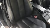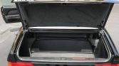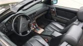 The cabin features seats trimmed in black leather with matching carpets and wood trim on the center console and door panels. Amenities include power-adjustable seats, automatic climate control, cruise control, power aLessories, a Mercedes-branded Becker Grand Prix cassette stereo, and a cassette storage tray.