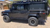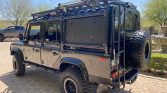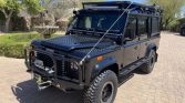 This 1993 Land Rover Defender 110 is number 143 of 500 North American Specification examples imported to the US for the model year. It is finished in black over black and is powered by a 2.8-liter TGV turbodiesel inline-four with an upgraded turbocharger paired with a five-speed manual transmission, dual-range transfer case, and an ARB locking differential. Equipment includes a front brush guard, front skid plate, winch, bead lock wheels, Fox external-reservoir shocks, a snorkel intake system, rock sliders, LED lights, quick-disconnect rear sway bar, an auxiliary fuel tank, a high-lift jack, Alcantara headliner, heated front seats, air conditioning, a CB radio, a Kenwood stereo, Bose speakers, and a custom dash with replacement instruments.