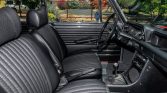 The interior was refurbished by Sidco Custom Upholstery of Mountain View, California and features seats upholstered in black vinyl with textured inserts along with matching door panels and salt-and-pepper carpeting. Amenities include front vent windows, a BMW-branded shift knob, a heater, a rear window defroster, and an aftermarket stock-style head unit with a speaker mounted in the center stack.