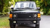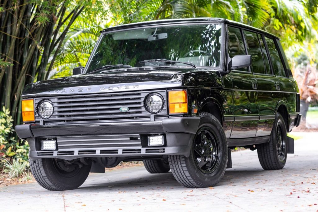 This 1994 Land Rover Range Rover is a long-wheelbase County example that is finished in Beluga Black over black leather and powered by a 4.2-liter V8 linked to a four-speed automatic transmission and a dual-range transfer case. Features include an aftermarket touchscreen head unit, LED lighting, air conditioning, a split rear tailgate, a receiver hitch, electronic air suspension, and aluminum body panels. Subsequent work commissioned by the seller is said to have included refinishing the trim, badging, bumpers, and 16″ Cyclone wheels in black along with an oil change.