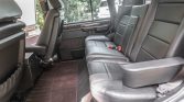 The 16″ Cyclone wheels were refinished in black under current ownership and are mounted with 235/70 Michelin Defender LTX M/S tires. The suspension underwent a coil spring conversion, which was converted back to the factory electronic air suspension system under previous ownership.