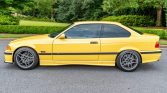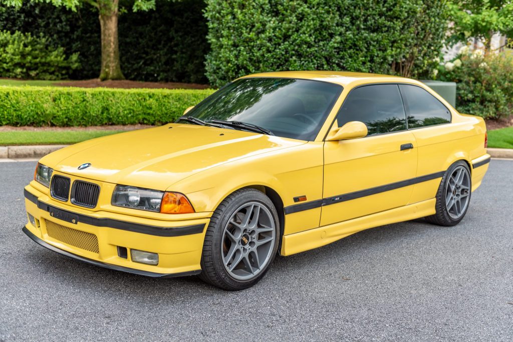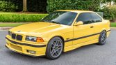 This 1995 BMW M3 coupe is finished in Dakar Yellow over black leather and powered by a 3.0-liter straight-six paired with a five-speed manual transmission. Equipment includes Vader front sport seats, a sunroof, and air conditioning, while modifications include woodgrain trim, a short-shift kit, 17″ BBS wheels, an Alpine stereo, LED lighting, Koni shocks, and a Dinan cold-air intake, throttle body, exhaust system, and suspension components. The car was first registered in Hawaii and spent time in Nevada and Georgia, where it was acquired by its current owner in 2015.