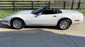 This 1995 Chevrolet Corvette convertible was first delivered to Scott Chevrolet of Emmaus, Pennsylvania, and is finished in white over black leather. Power comes from a 5.7-liter LT1 V8 paired with a four-speed automatic transmission, and additional equipment includes a white soft top, air conditioning, cruise control, power aLessories, power-adjustable seats, a low-tire-pressure warning system, and a Delco Bose music system with cassette and CD players.