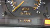 The leather-wrapped steering wheel frames a 160-mph speedometer, a tachometer with a 6k-rpm redline, and an analog clock, as well as gauges for fuel level, coolant temperature, oil pressure, and fuel economy. The digital odometer indicates just over 57k miles approximately 300 of which were added during current ownership.