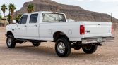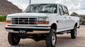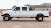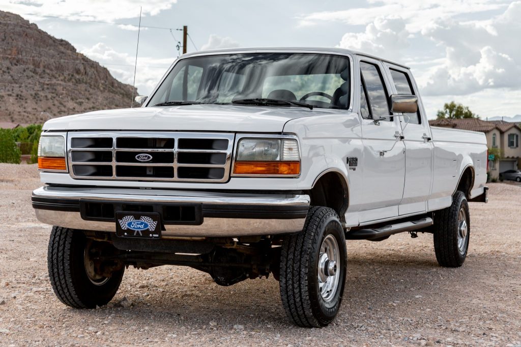 …This 1997 Ford F-350 XLT 4×4 is finished in Oxford White over Opal Gray cloth and was purchased new by the seller and his father from Friendly Ford in Las Vegas, Nevada. The truck is powered by a 7.3-liter turbodiesel V8 mated to a four-speed automatic transmission, a dual-range transfer case, and a limited-slip differential. Equipment includes 16″ alloy wheels, dual fuel tanks, a Banks Technicooler intercooler, a Magnaflow exhaust system, tow mirrors, and air conditioning.
